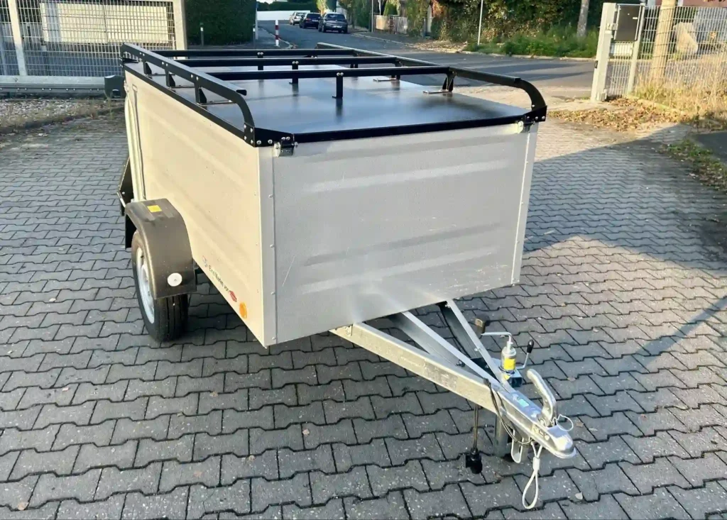 Der Kofferanhänger ist neu, ungebremst und von der Marke *KT-EU2. Wir haben auch den KT-EB2 und den KT-EU3 zum Verkauf für Sie vor Ort.