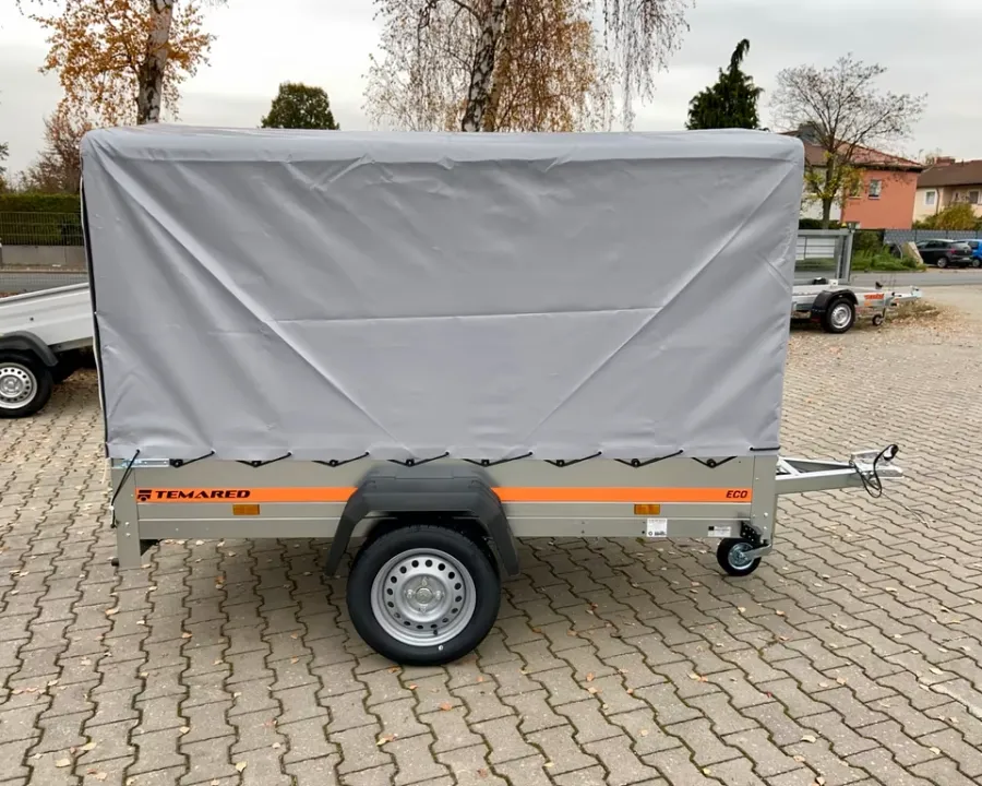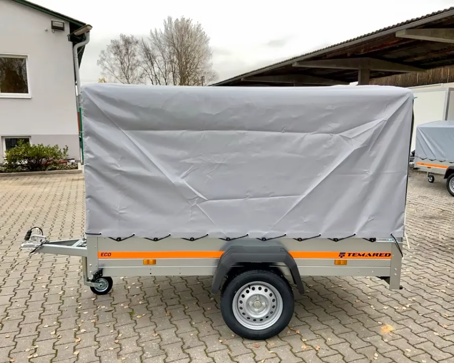 Der Anhänger von der Marke *TEMARED ist neu und besitzt 3 Jahre HU.Der Anhänger ist mit B - Führerschein fahrbar. Auf diesem Temared 2312 Eco ist die hochwertigere Plane der Temared Pro-Serie verbaut.
