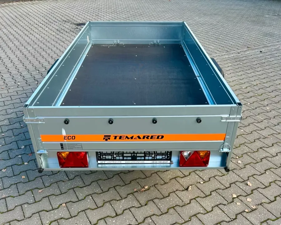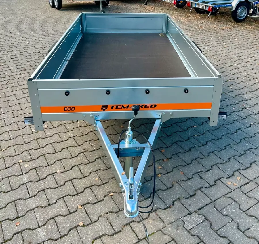 Der Anhänger von der Marke *Temared ist neu und besitzt 3 Jahre HU. Er ist ungebremst. Er ist einachsig. Der Anhänger ist mit B - Führerschein fahrbar.