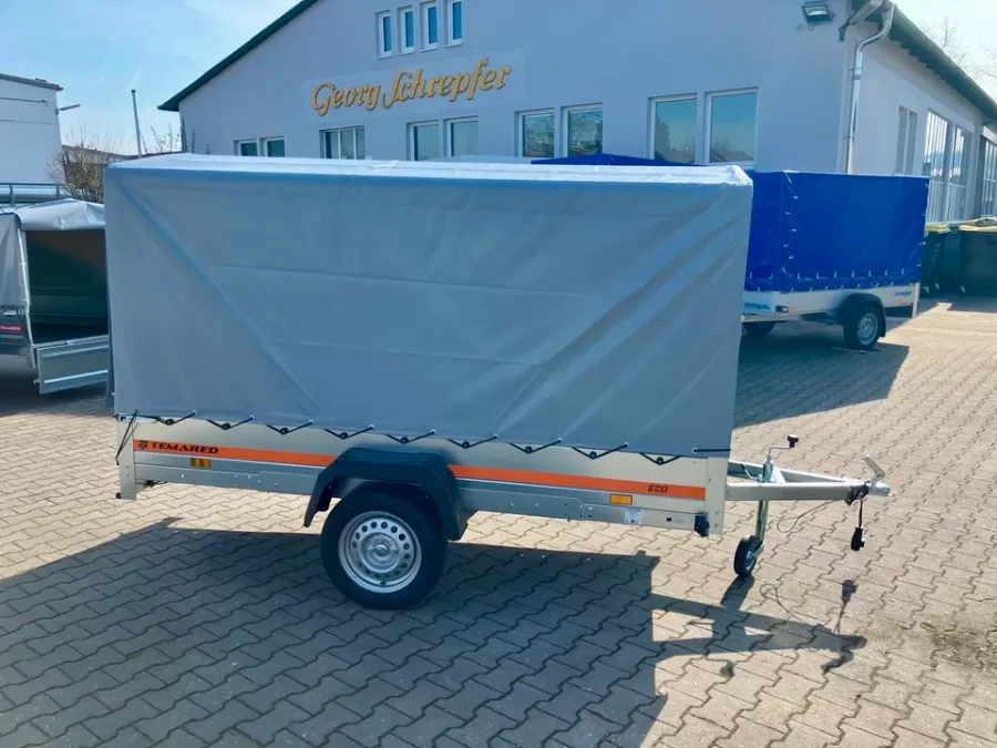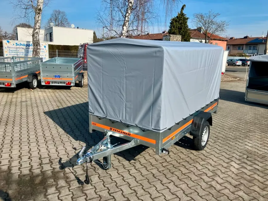 Der Anhänger von der Marke *Temared ist neu und besitzt 3 Jahre HU. Er ist ungebremst. Er ist einachsig. Der Anhänger ist mit B - Führerschein fahrbar.
