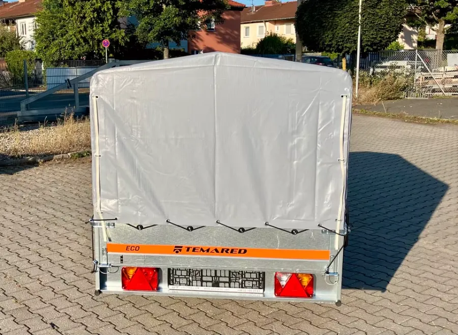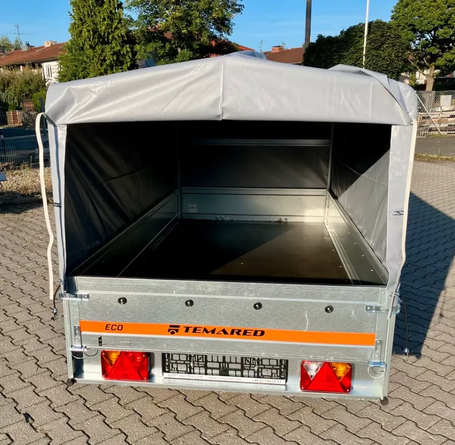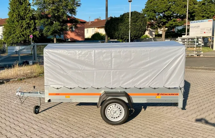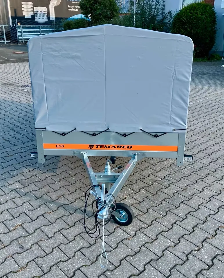 Der Anhänger von der Marke *Temared ist neu und besitzt 3 Jahre HU. Er ist ungebremst. Er ist einachsig. Der Anhänger ist mit B - Führerschein fahrbar.