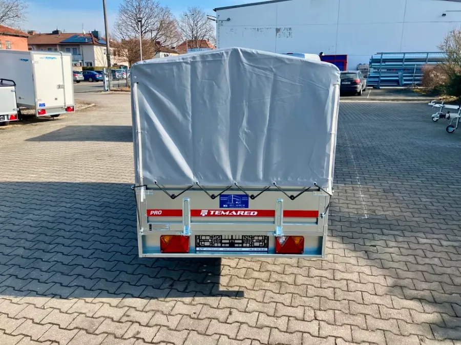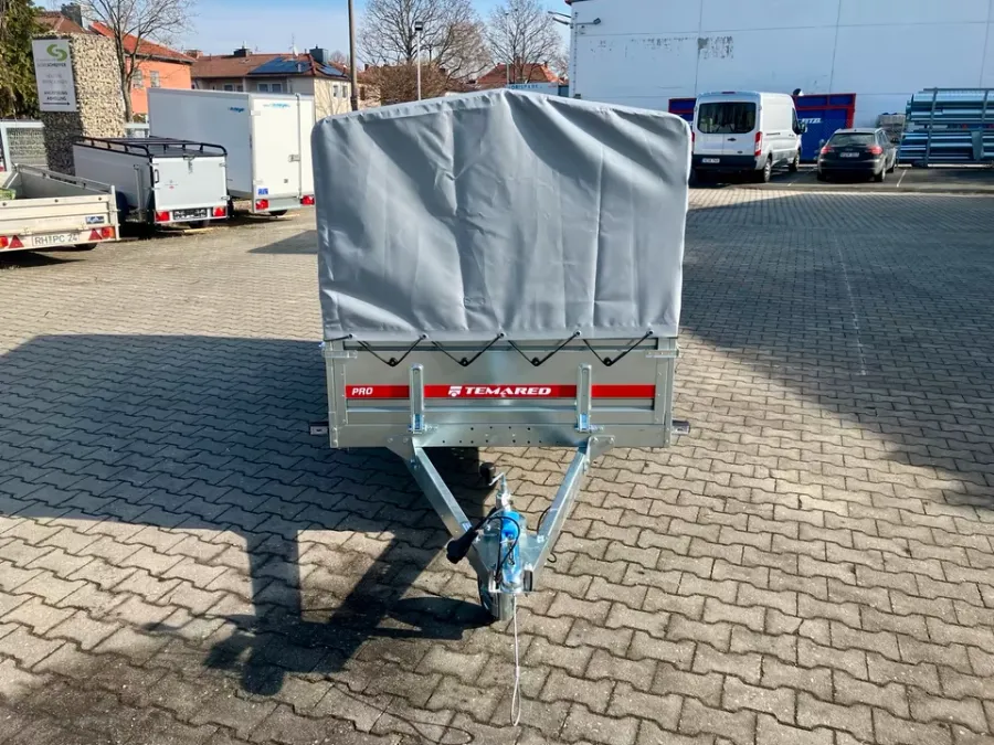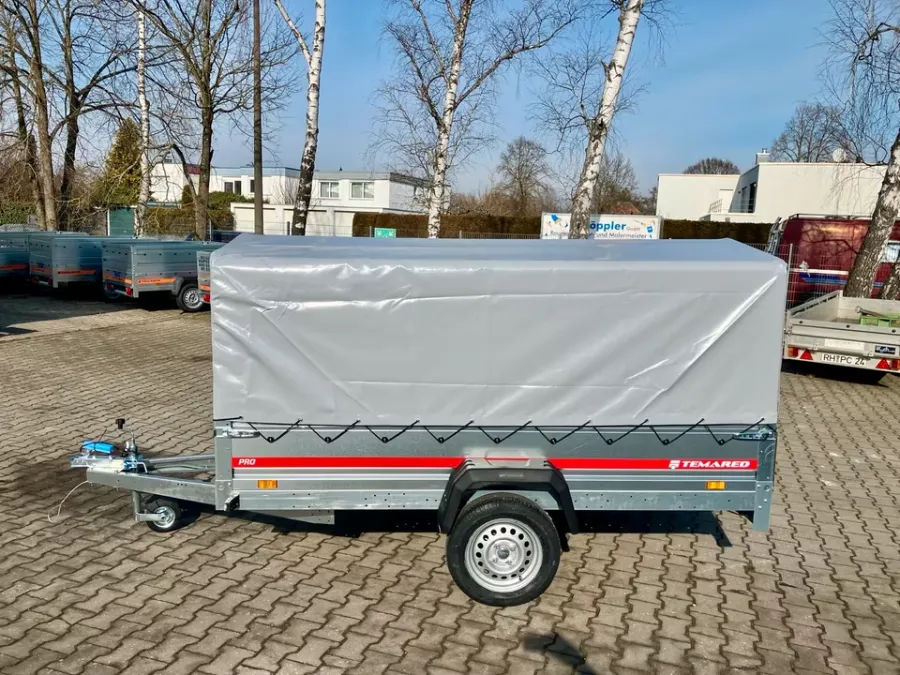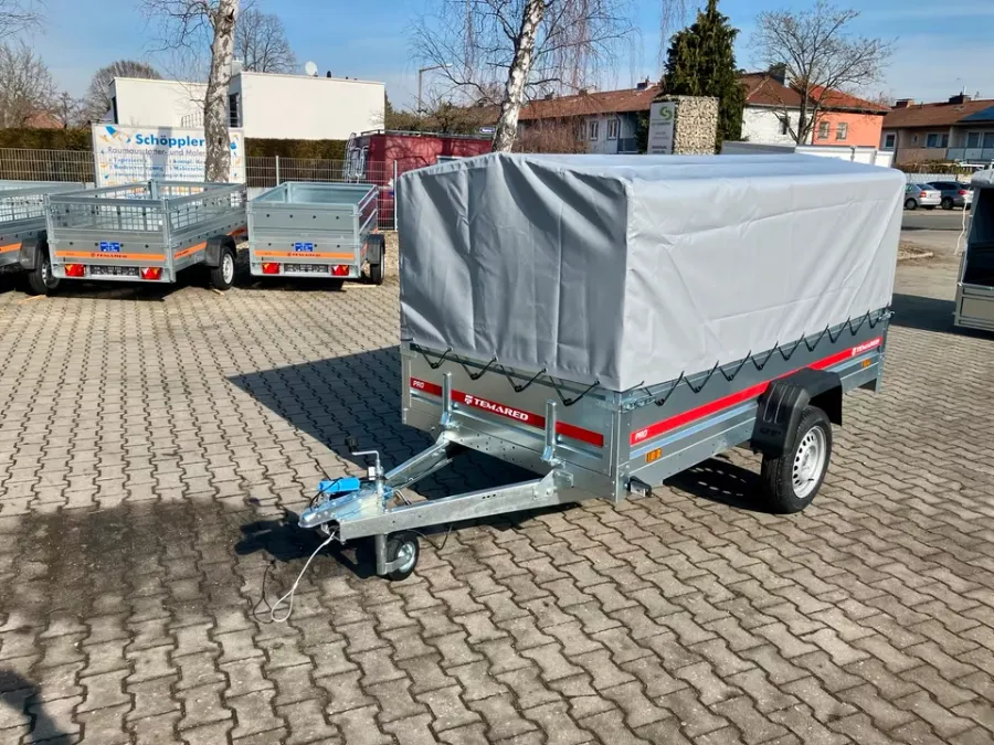 Der Anhänger von der Marke *Temared ist neu und besitzt 3 Jahre HU. Er ist ungebremst. Er ist einachsig. Die Bordwände können vorne und hinten geöffnet werden. Der Anhänger ist mit B - Führerschein fahrbar.j