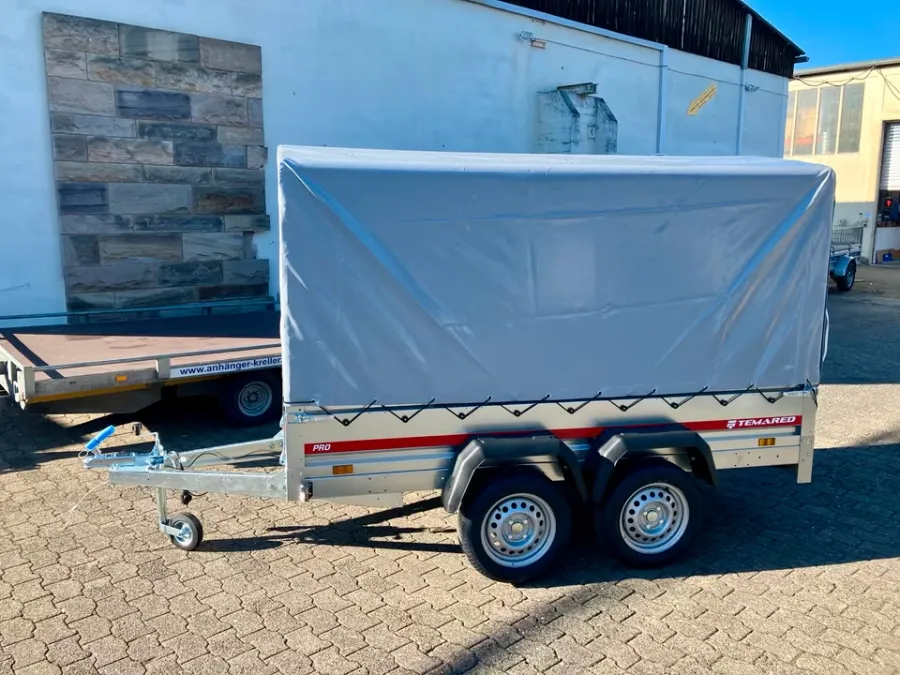 Der Anhänger von der Marke *Temared ist neu und besitzt 3 Jahre HU. Er ist ungebremst. Er ist zweiachsig. Die Bordwände können vorne und hinten geöffnet werden. Der Anhänger ist mit B - Führerschein fahrbar.