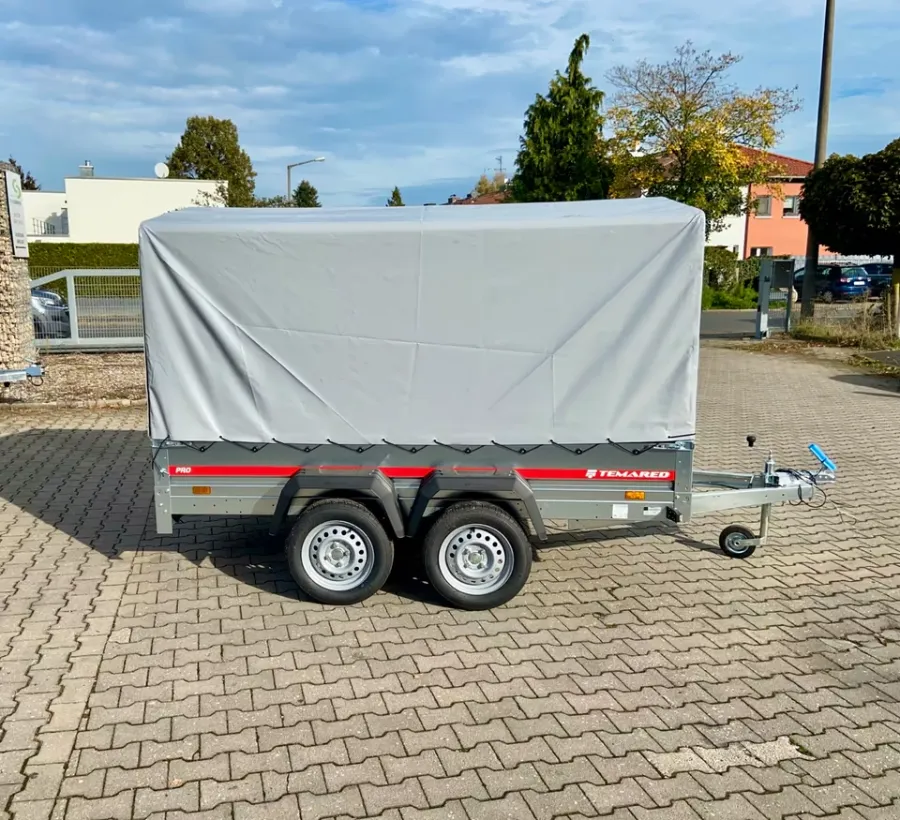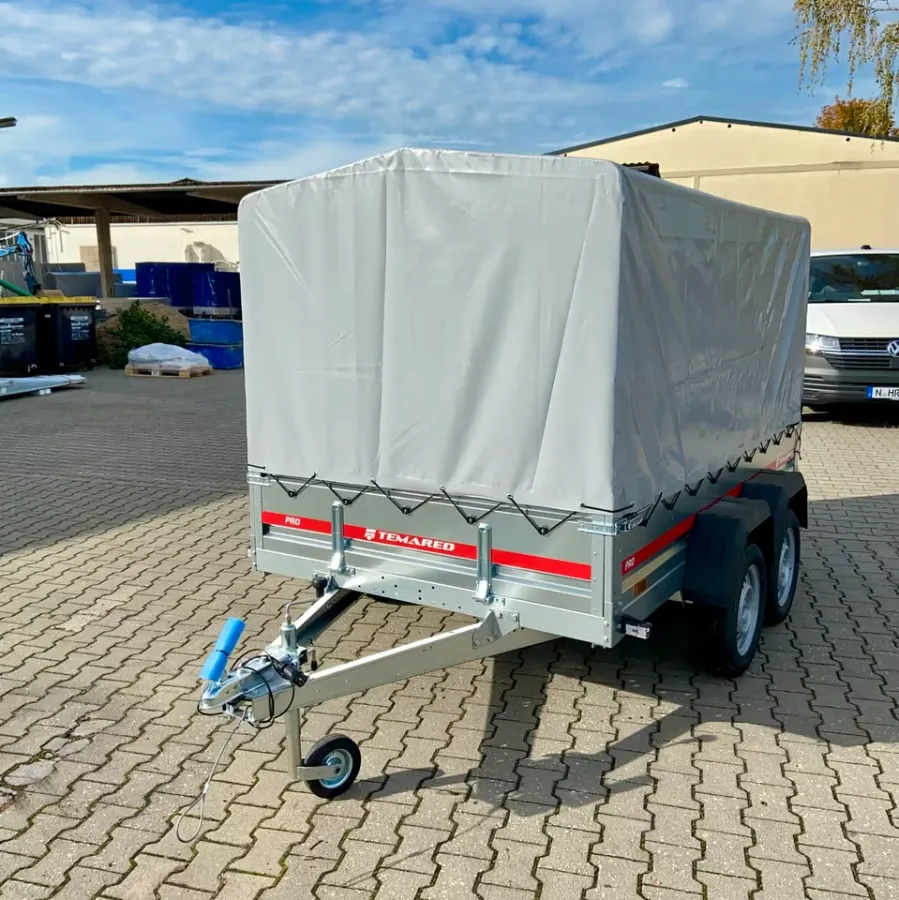 Der Anhänger von der Marke *Temared ist neu und besitzt 3 Jahre HU. Er ist ungebremst. Er ist zweiachsig. Die Bordwände können von vorne und hinten geöffnet werden. Der Anhänger ist mit B-Führerschein fahrbar.